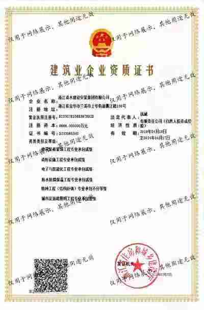 浙江清水建設(shè)安裝集團(tuán)有限公司成立于2013年,注冊(cè)資金6688萬(wàn)元。集團(tuán)具有消防設(shè)施工程專業(yè)承包壹級(jí)、城市與道路照明專業(yè)承包壹級(jí)、電子與智能化專業(yè)承包壹級(jí)、建筑裝飾裝修專業(yè)承包貳級(jí)、防水防腐保溫專業(yè)承包貳級(jí)、市政工程施工總承包貳級(jí)、機(jī)電工程施工總承包貳級(jí)、建筑工程施工總承包貳級(jí)、電力工程施工總承包貳級(jí)、機(jī)電工程專業(yè)承包貳級(jí)、環(huán)保工程專業(yè)承包貳級(jí)、古建筑工程專業(yè)承包貳級(jí)、特種工程結(jié)構(gòu)補(bǔ)強(qiáng)專業(yè)承包、建筑施工勞務(wù)作業(yè)專業(yè)承包(憑建筑業(yè)企業(yè)資質(zhì)證書(shū)經(jīng)營(yíng)